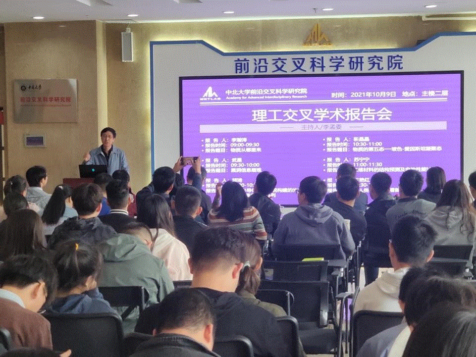 10月9日上午,中北大学前沿交叉科学研究院举办了理工交叉学术报告会。报告会由研究院院长李孟委教授主持,参加会议的有前沿院骨干研究人员及100多名研究生。本次报告会作为省教改项目"研究生六个一"培养模式的内容之一,研究生院院长胡双启教授出席了会议。